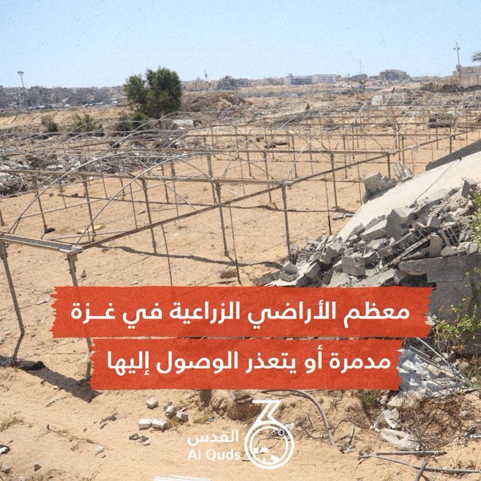 قالت وكالة الأمم المتحدة لإغاثة وتشغيل اللاجئين الفلسطينيين (أونروا) إنّ جميع الأراضي الزراعية في قطاع غزة تقريبًا، مدمرة أو يتعذر الوصول إليها نتيجة حرب الإبادة التي استمرّت لعامين في القطاع.