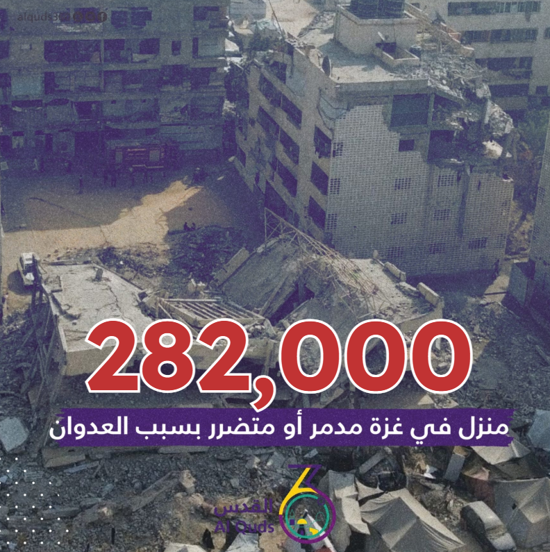 وذكرت أنه وفقًا لتلك البيانات، تسبب القصف الإسرائيلي في تدمير أو تضرر أكثر من 282 ألف منزل في غزة، ما ترك الناس بلا مأوى.