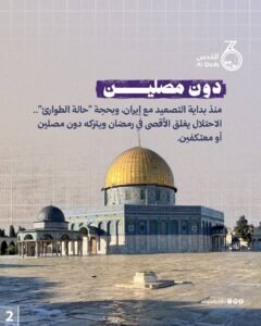 سرد بصري إغلاق المسجد الأقصىذرائع واهية وأهداف لابد من إفشالها كمال الجعبري أرسل بريدا إلكترونيا 2026-03-06 أقل من دقيقة كمال الجعبري أرسل بريدا إلكترونيا 2026-03-06 أقل من دقيقة