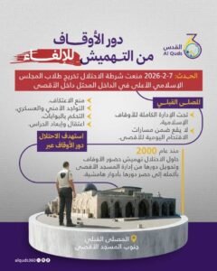 إنفوغرافالوسائط والمرئيات دور الأوقاف من التهميش للإلغاء فريق التحرير تابع على X أرسل بريدا إلكترونيا 2026-02-10 أقل من دقيقة فيسبوك X Pocket واتساب تيلقرام طباعة الوسومالأوقاف المسجد الأقصى فريق التحرير تابع على X أرسل بريدا إلكترونيا 2026-02-10 أقل من دقيقة فيسبوك X Pocket واتساب تيلقرام طباعة