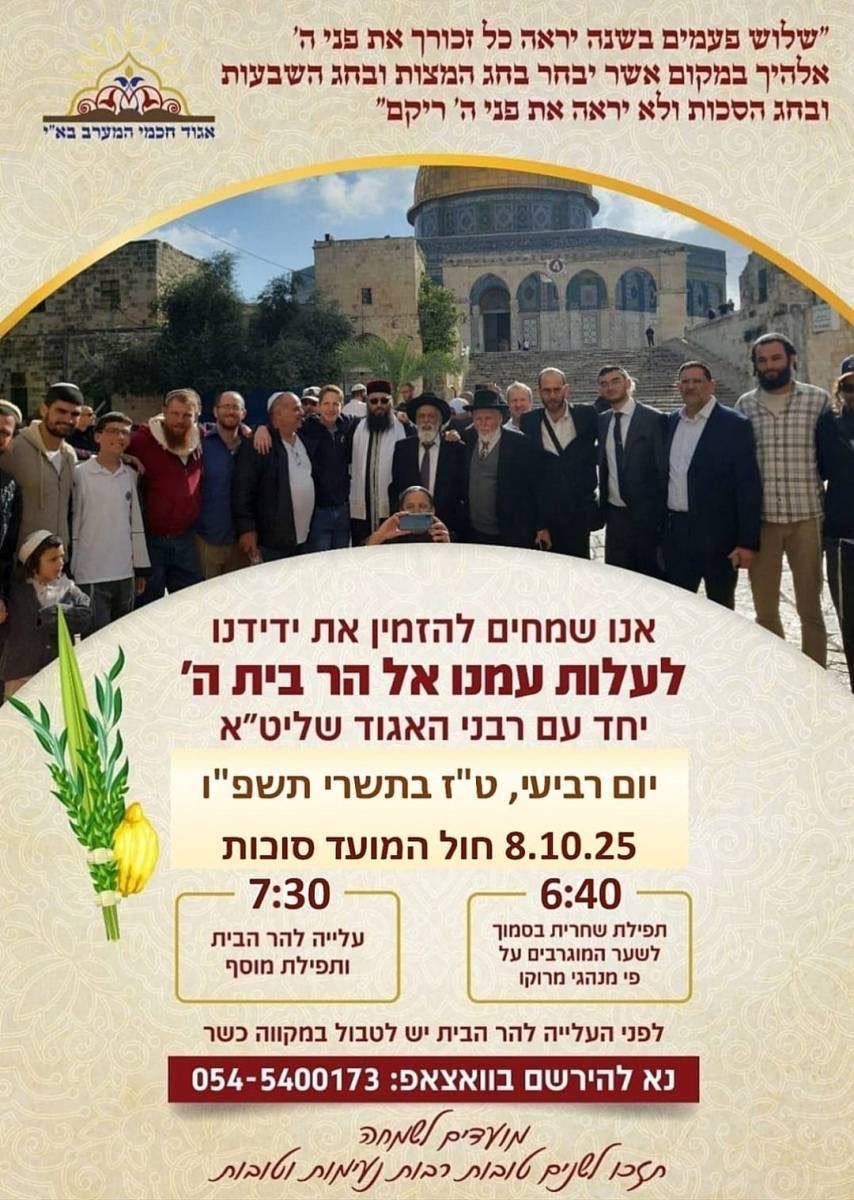 وقد انضمت إلى جُملة "منظمات الهيكل" منظمة جديدة تسمي نفسها "رابطة حكماء الغرب في أرض إسرائيل" وهي رابطة للحاخامات ذوي الأصول المغربية والأندلسية تأسست في 2022، ويسعون إلى توظيف ما يعدونه "إحياء التقاليد الدينية ليهود الأندلس والمغرب" كرافعة لاقتحام المسجد الأقصى وللدعوة إلى أداء الطقوس الدينية فيه باعتباره "جزءًا مركزيًا من تقاليدهم الدينية"، وسيكون اقتحامهم للأقصى يوم الأربعاء 10/8 وسيشمل أداء الطقوس الدينية بما في ذلك صلوات الصباح والمساء بحسب إعلانهم.