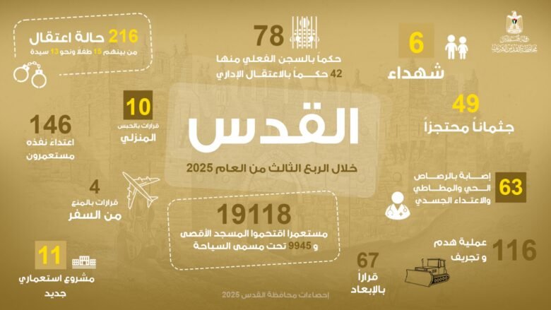 أكمل القراءة »رصدت محافظة القدس جرائم الاحتلال الإسرائيلي في المحافظة خلال الربع الثالث من العام 2025، وتركزت الانتهاكات حول الإعدام الوحشي والاعتقالات…