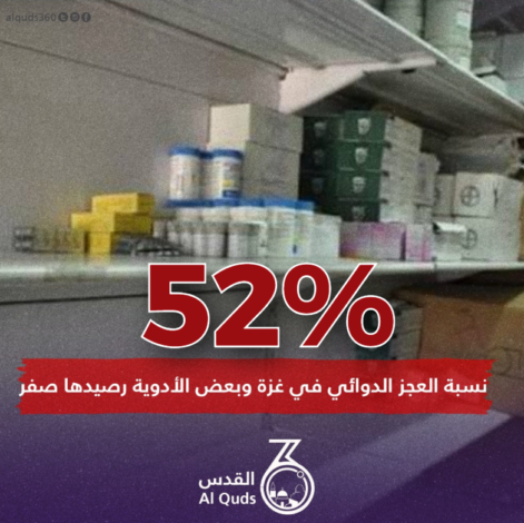 أكمل القراءة »أفادت وزارة الصحة الفلسطينية في قطاع غزة بأن العجز الدوائي في القطاع المحاصر بلغ 52%، فيما أصناف عديدة رصيدها صفر.…